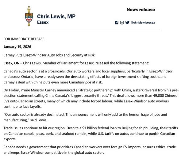 I met with Nicole from the Canadian Association of Moldmakers (CAMM) to talk about Carney’s deal to let 49,000 Chinese EVs flood our market — vehicles that would make up to 30% of projected EV sales in 2026, with zero end-of-life safeguards in place.