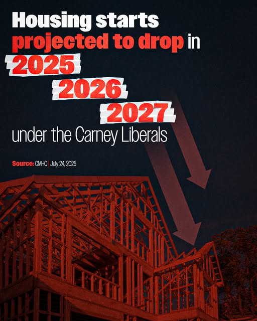 Despite promises of “the most ambitious housing plan since WWII,” new CMHC data shows housing starts are falling—not rising.