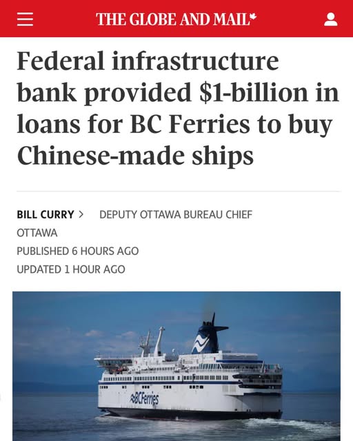 Conservatives secured an emergency committee meeting to start getting answers for Canadians on how the Liberals allowed $1 billion of Canadian tax dollars, via the Liberal created Canadian Infrastructure Bank, to bankroll BC Ferries purchasing four new ferries from the China Merchants Industry Weihai Shipyards, a Communist Party state-owned enterprise (SOE).